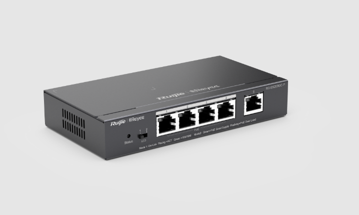 Switch Metálico Administrable con 4 Puertos PoE/PoE+, ideal para alimentar dispositivos como cámaras IP, teléfonos VoIP o puntos de acceso inalámbricos. Ofrece gestión avanzada, carcasa resistente y conectividad eficiente para redes pequeñas o medianas.